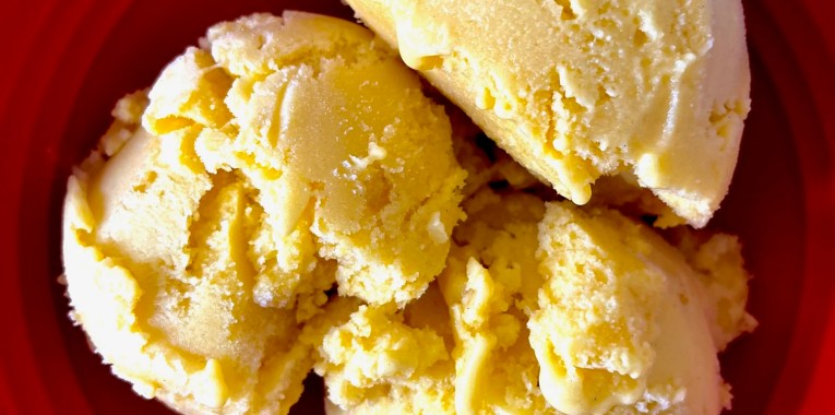 Refreshing and sexy. Something about mango and cardamom just tastes sultry. Inspired by the Indian beverage, this ice cream is a mix or fresh mango, milk, and Siggi’s drinkable yogurt. The yogurt is not heated in this process, hoping to preserve it’s healthful bacteria. The fresh mango brings natural sweetness, and is a low calorie but highly nutritious fruit.