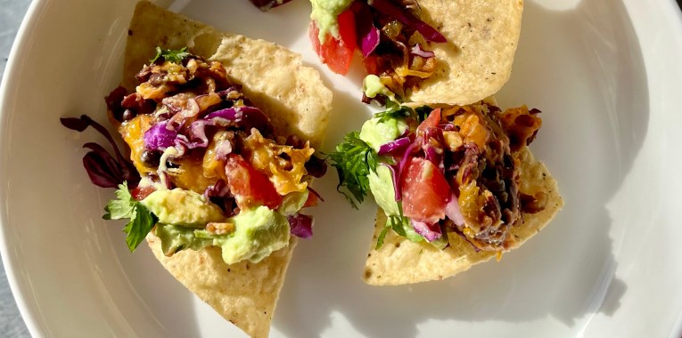 This is probably Taylor’s boyfriend’s favorite snack. Super Bowl anyone? I use the word “dip” reluctantly because it is fully loaded and requires more of a “shovel” than a “dip” of the chip. Buy strong chips to serve with. Don’t be put off by the, seemingly, long list of ingredients or instructions. This recipe comes together easily and is worth the effort.