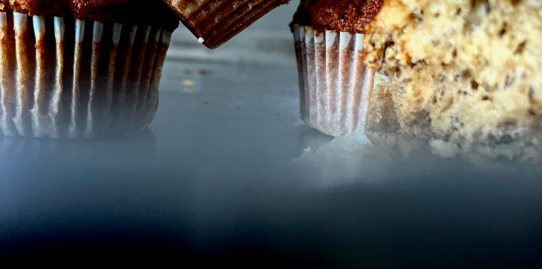 This experiment was inspired by aromas. I really love the smell of black pepper. I find it so complex and full of twists and turns. Bananas too have an intestong aroma that evolves wih the ripeness of the fruit. The best bananas for breads and muffins are the ones that almost squish out of the dark peel; a banana rarely eaten in the same way that a bright yellow banana is eaten. The result of my current curiosity sounds like something from a spell book. Grab the squishy brown bananas, and black pepper and take these charming muffins to a Halloween party. If you want to creep people out a little, up the amount of black pepper by a smidge.