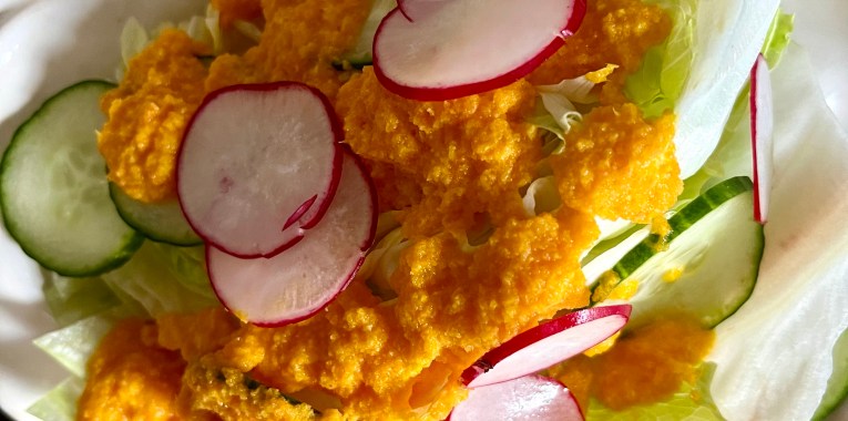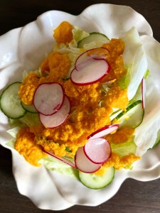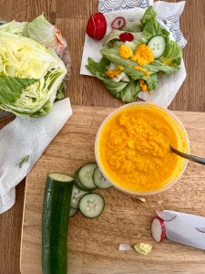 Ginger has so many great attributes and this dressing is a great way to get a big hit of fresh ginger. Ginger is naturally warming, stimulates digestion, and reduces “dampness” in the body. Ginger’s concentrated anti inflammatory properties can help reduce pains related to cramping and arthritus, and may relieve bloating.
